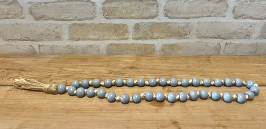 Wooden Beaded Garland with Twine Tassel Grey